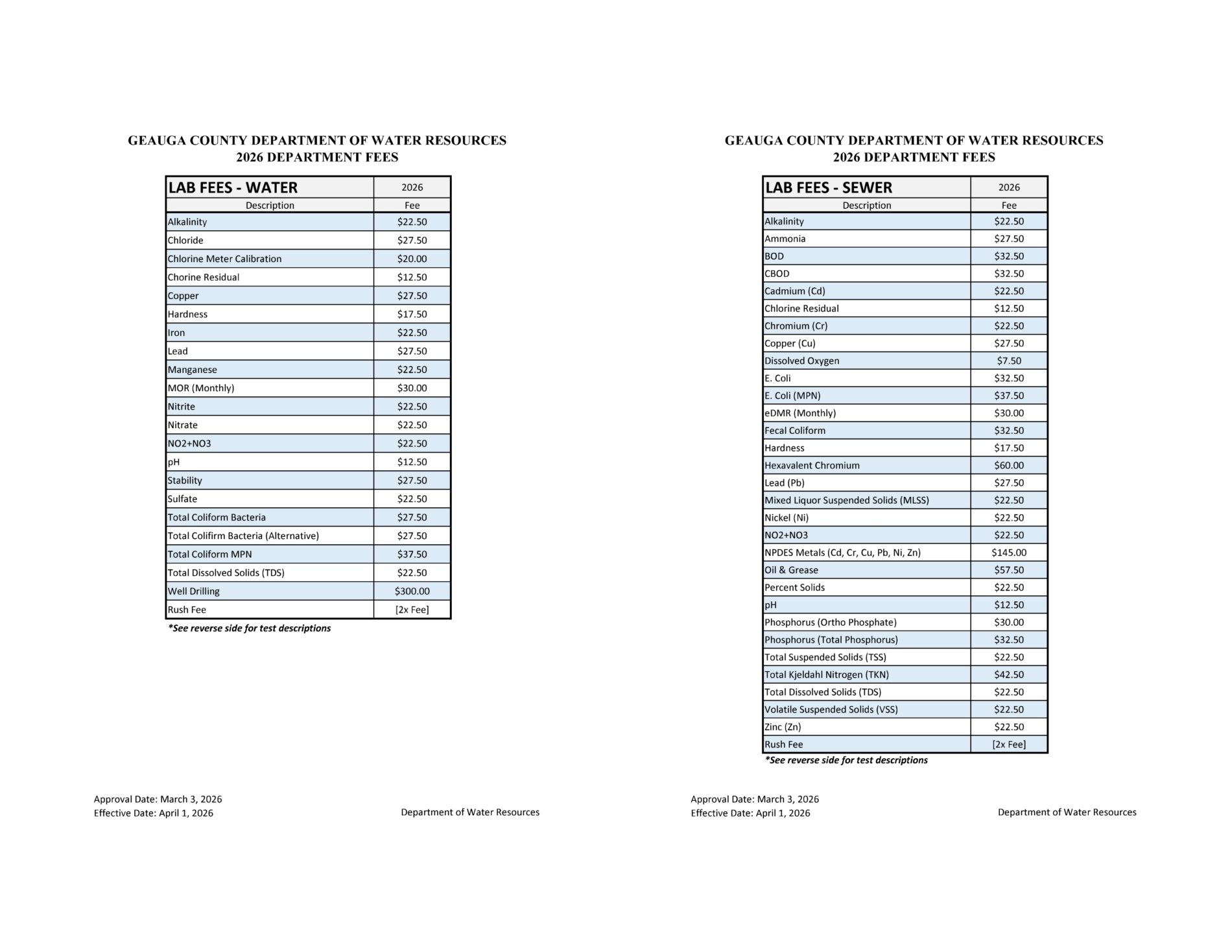 | DWR Lab Department Fees 2026 | DWR-Department-Fees-Approved-Lab-2026.03.03.pdf | Mar 6, 2026 | 2026-03-06 | Laboratory |